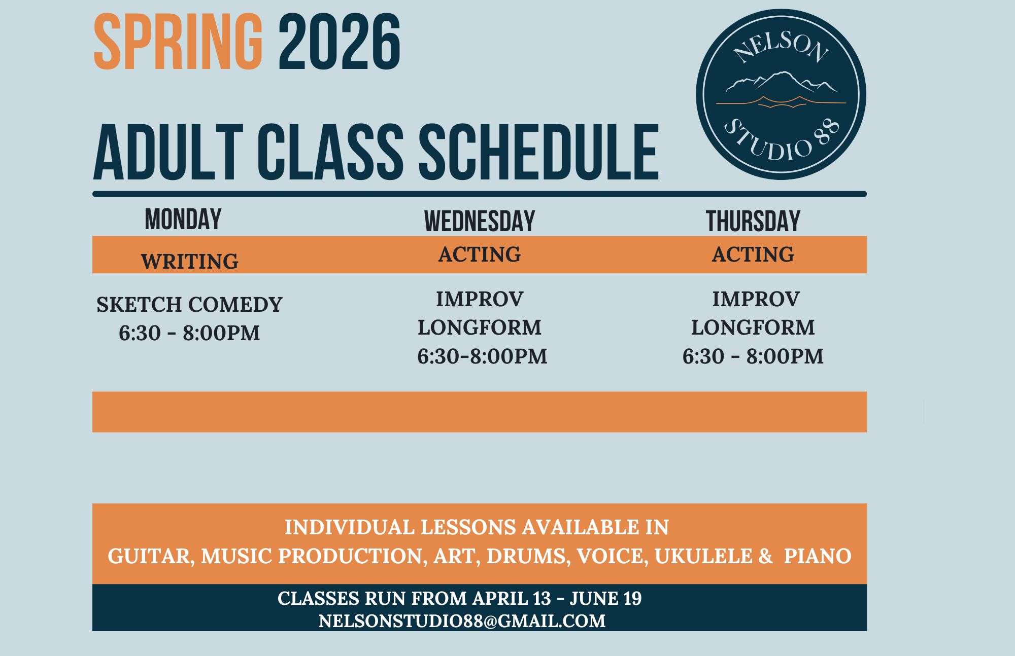 Improv Acting: Adults — Learn long-form improv basics — “Yes, And,” scene work, and stage editing. Build confidence and spontaneity in four weeks.